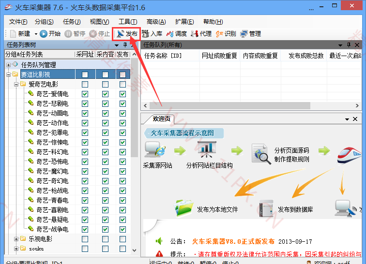 1、你需要下载一个破解版的火车头采集器