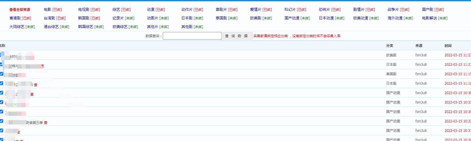 5、填写好后,点击刚刚添加的资源站,编辑绑定栏目