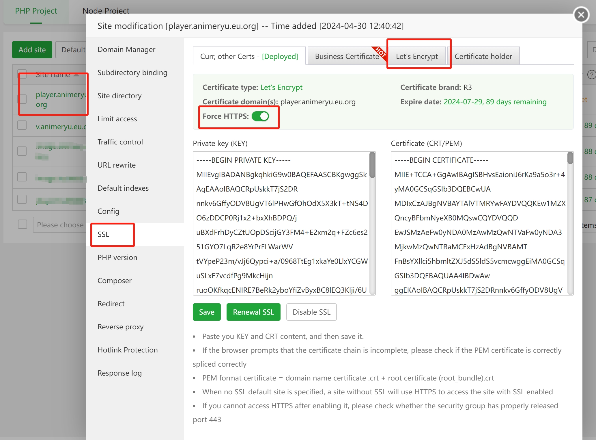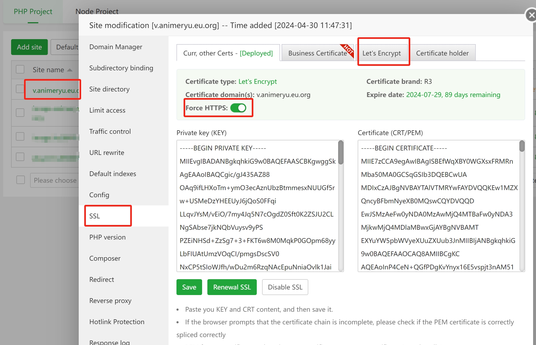 2、申请ssl证书并强制https