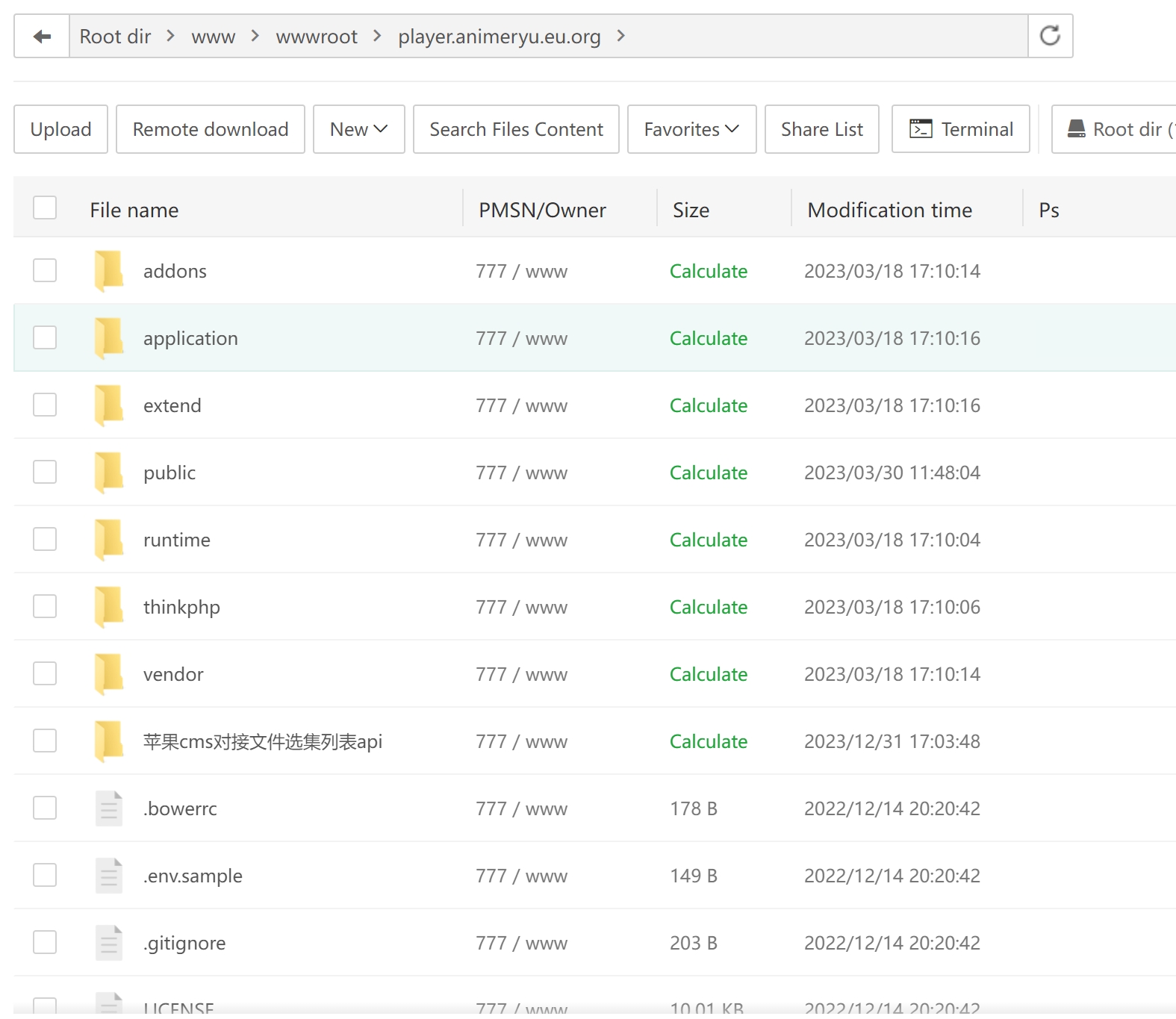 3、进入网站根目录,删除所有原有文件,上传苹果cms压缩包文件并解压,将解压文件复制到网站根目录,删除解压文件夹及压缩包文件,全选文件设置权限为777