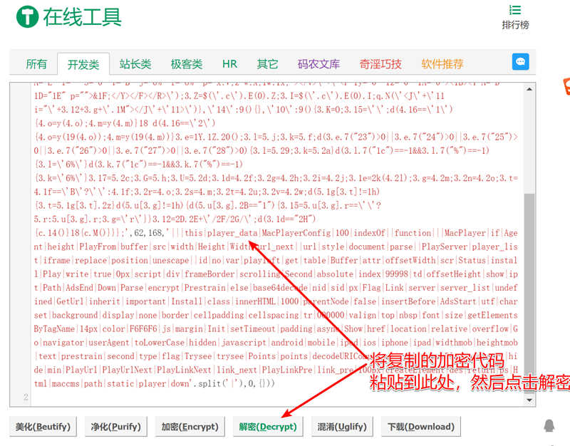 去后门方法:1、打开player.js发现加密了,加密方式为eval(function(p,a,c,k,e,r){})