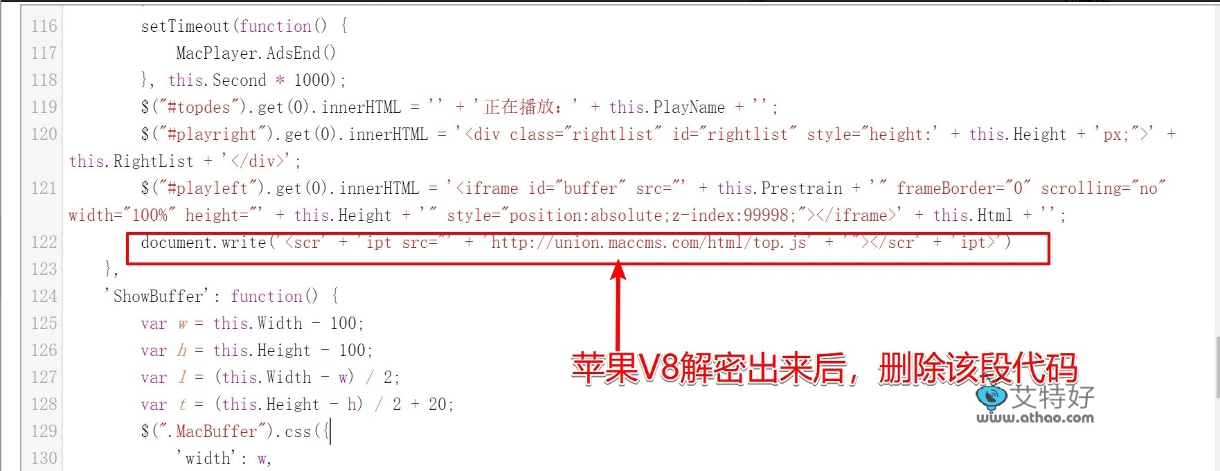 3. 解密出来后,找到该出广告代码,并删除该行代码